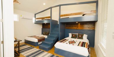 We have four bunkrooms available. Each accommodate up to six guests. They feature two queen beds and two twin XL's.
